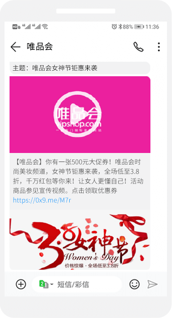 某電商平臺借助日常線上購物節運用發放大促信息,同時,為了避免羊毛黨采用了空號檢測服務